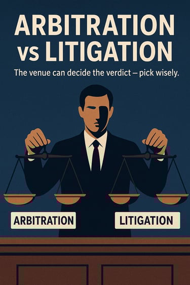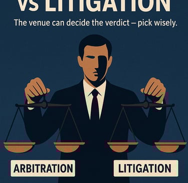 The battle between arbitration and litigation is not about superiority but suitability. Each has its own strengths, tailored to different needs and circumstances. Litigation offers judicial authority, precedent, and transparency essential for upholding the rule of law. Arbitration, on the other hand, provides speed, flexibility, confidentiality, and international enforceability essential for modern commerce. The wisest approach lies in foresight. Dispute resolution should be planned at the contract stage, not after conflict arises. By carefully crafting arbitration clauses or dispute resolution frameworks, parties can save time, costs, and relationships. In the end, the forum you choose can shape not just the outcome of a dispute, but also the future of your business relationships. As the saying goes, “the venue can decide the verdict, so pick wisely.