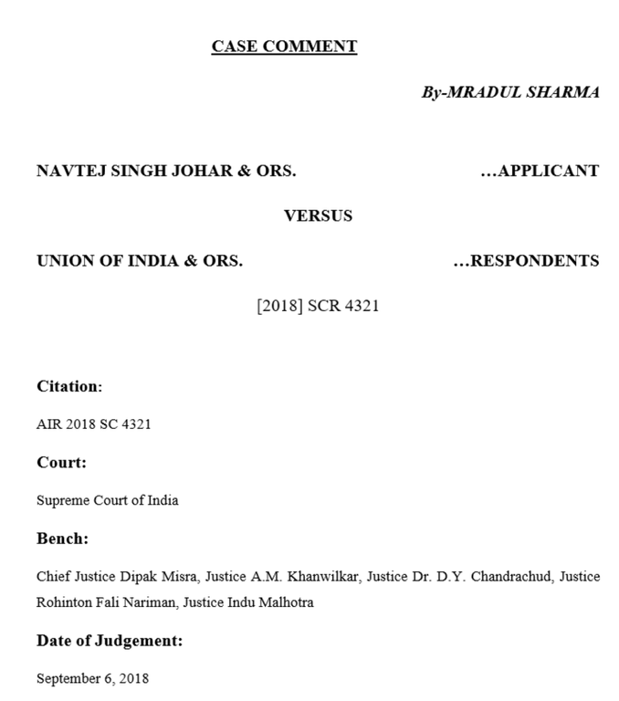 1. Navtej Singh Johar & Ors. v. Union of India & Ors., AIR 2018 SC 4321.
