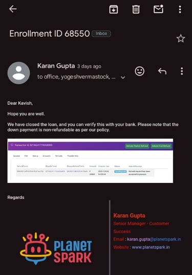Thank you so much Kavish Sir for your legal assistance, this seemed like an impossible task. But you made it so easy and quick to solve and saved me from the wrongful losses!